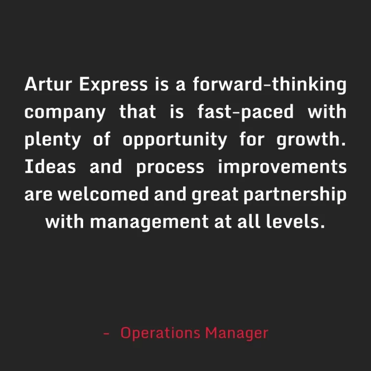 Take a look at our open positions. Artur Express is expanding fast, and we’re searching for some motivated individuals to help keep up our momentum.